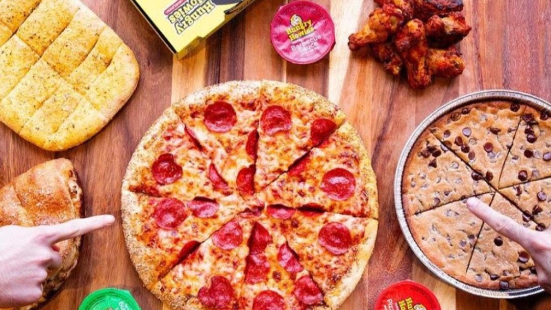 Their customers are fans of flavor. A menu bursting with flavor and dough made fresh daily in each of our locations makes Hungry Howie’s different from the corporate pizza chains. Their family of independently owned and operated franchises are run by folks who live and work in your community. Adding a Flavored Crust® to your original round, deep dish, thin crust, or gluten-free crust brings flavor to your table at a fair price. Make sure to try our 8 free Flavored Crust® options – Butter, Asiago Cheese, Cajun, Butter Cheese, Sesame, Garlic Herb, Ranch, Italian Herb – and of course don’t forget their Featured Flavored Crust®. You can’t live by pizza alone. So that’s why Hungry Howie’s offers a great selection of calzone-style oven-baked subs, Howie Bread®, fresh salads, Howie Wings®, Howie RollTMs®, desserts & Pepsi® products.